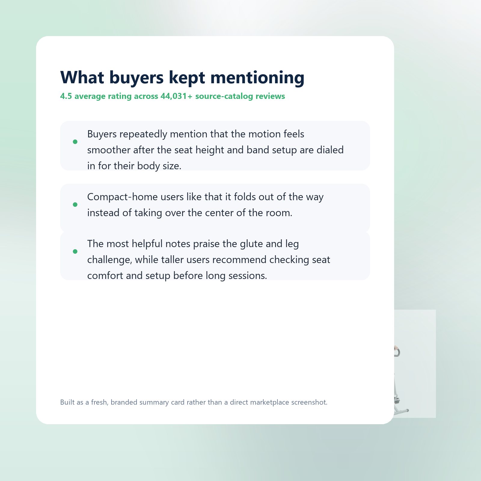 - Buyers repeatedly mention that the motion feels smoother after the seat height and band setup are dialed in for their body size.
