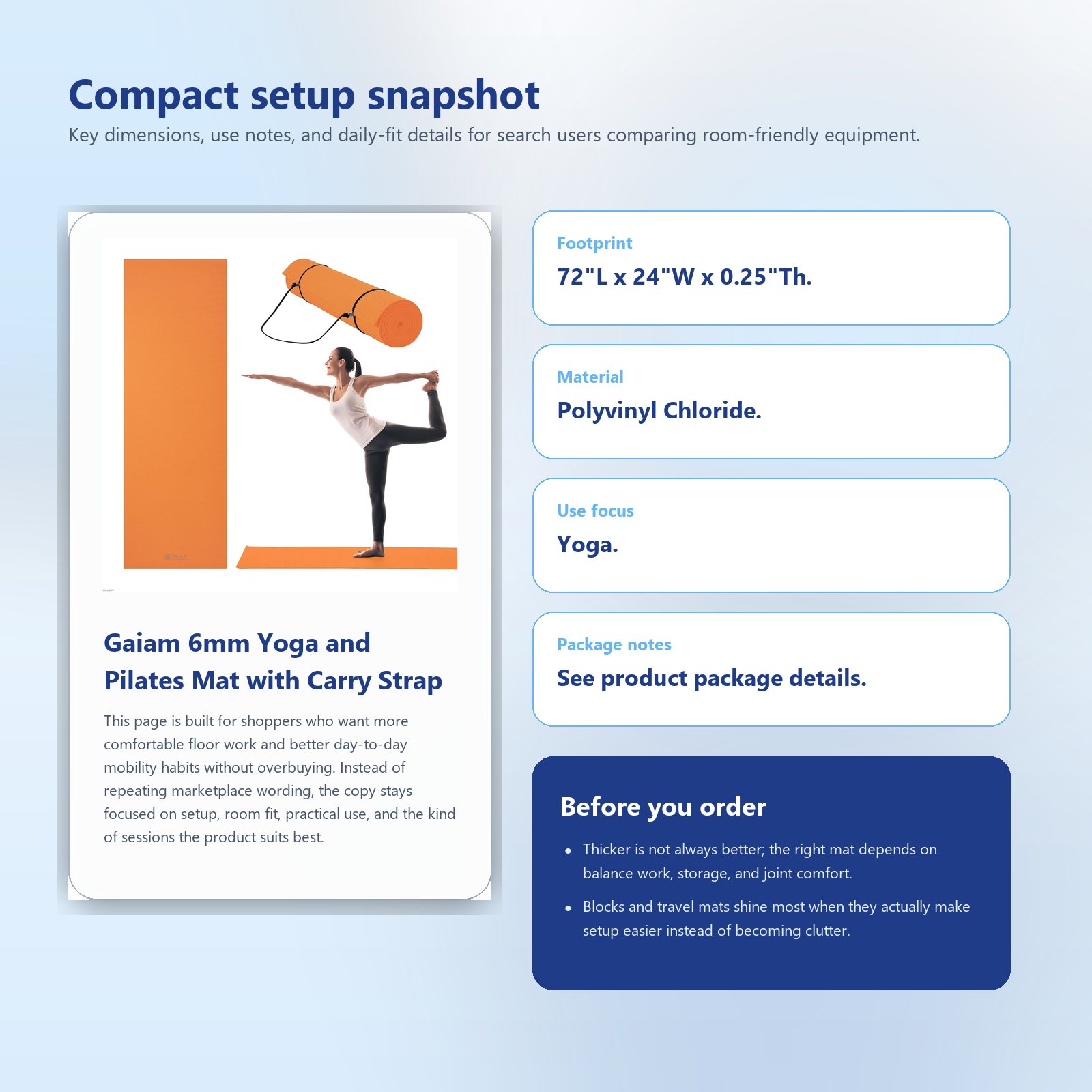 This listing is based on the Gaiam source model family, but the page structure, rewritten headlines, fit guidance, and visuals were rebuilt for FitGear Mini shoppers looking for cleaner search results and faster product understanding.