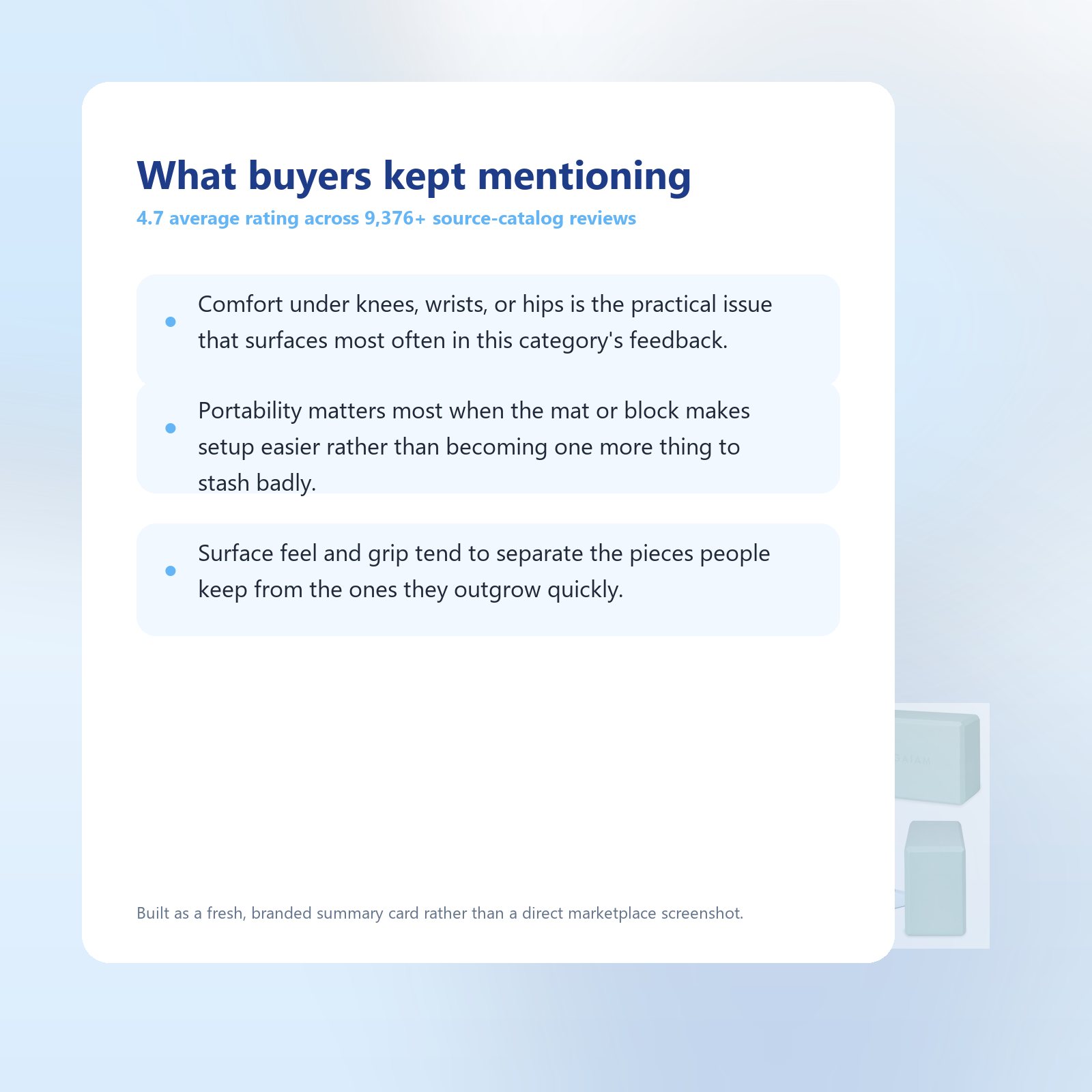 - Comfort under knees, wrists, or hips is the practical issue that surfaces most often in this category's feedback.