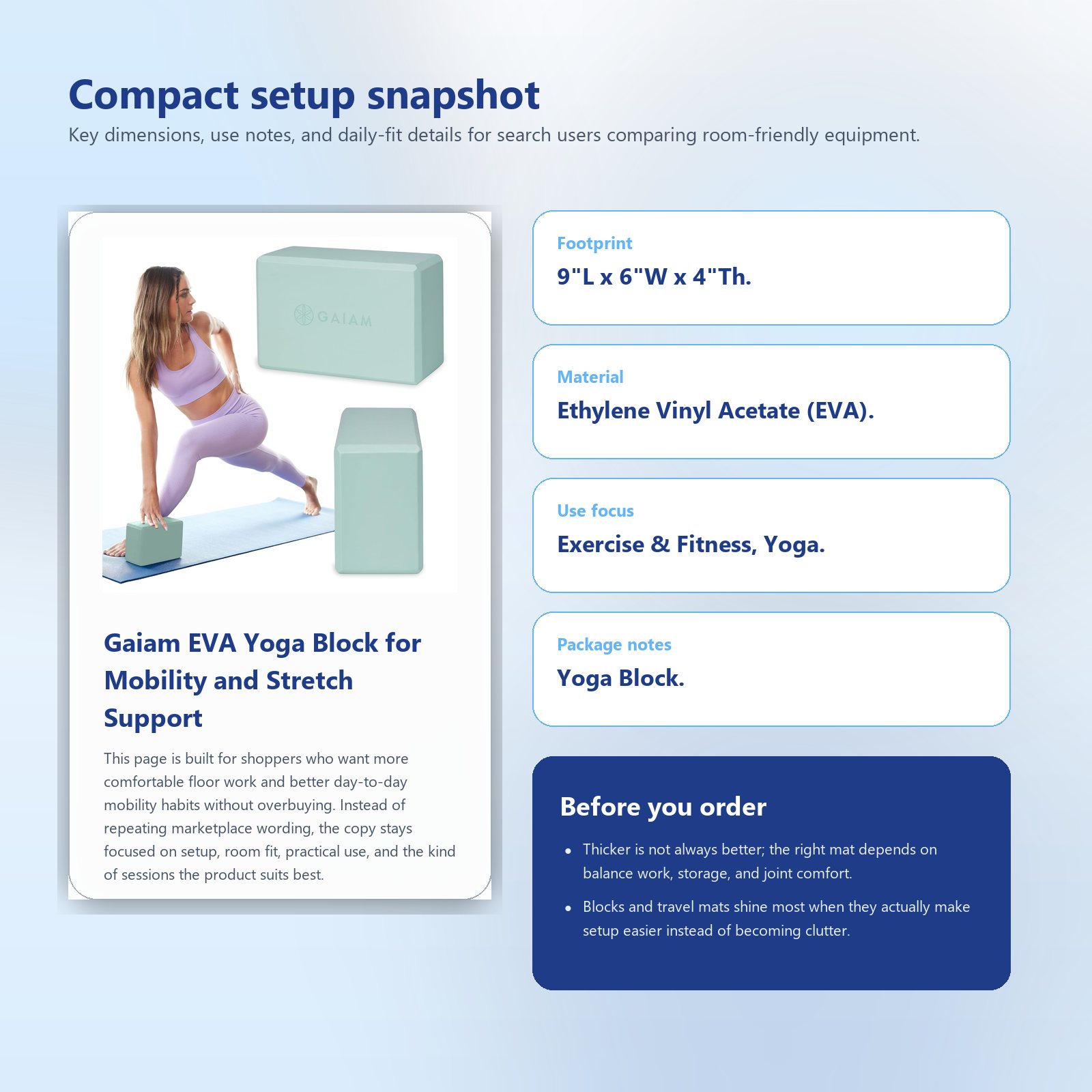 This listing is based on the Gaiam source model family, but the page structure, rewritten headlines, fit guidance, and visuals were rebuilt for FitGear Mini shoppers looking for cleaner search results and faster product understanding.