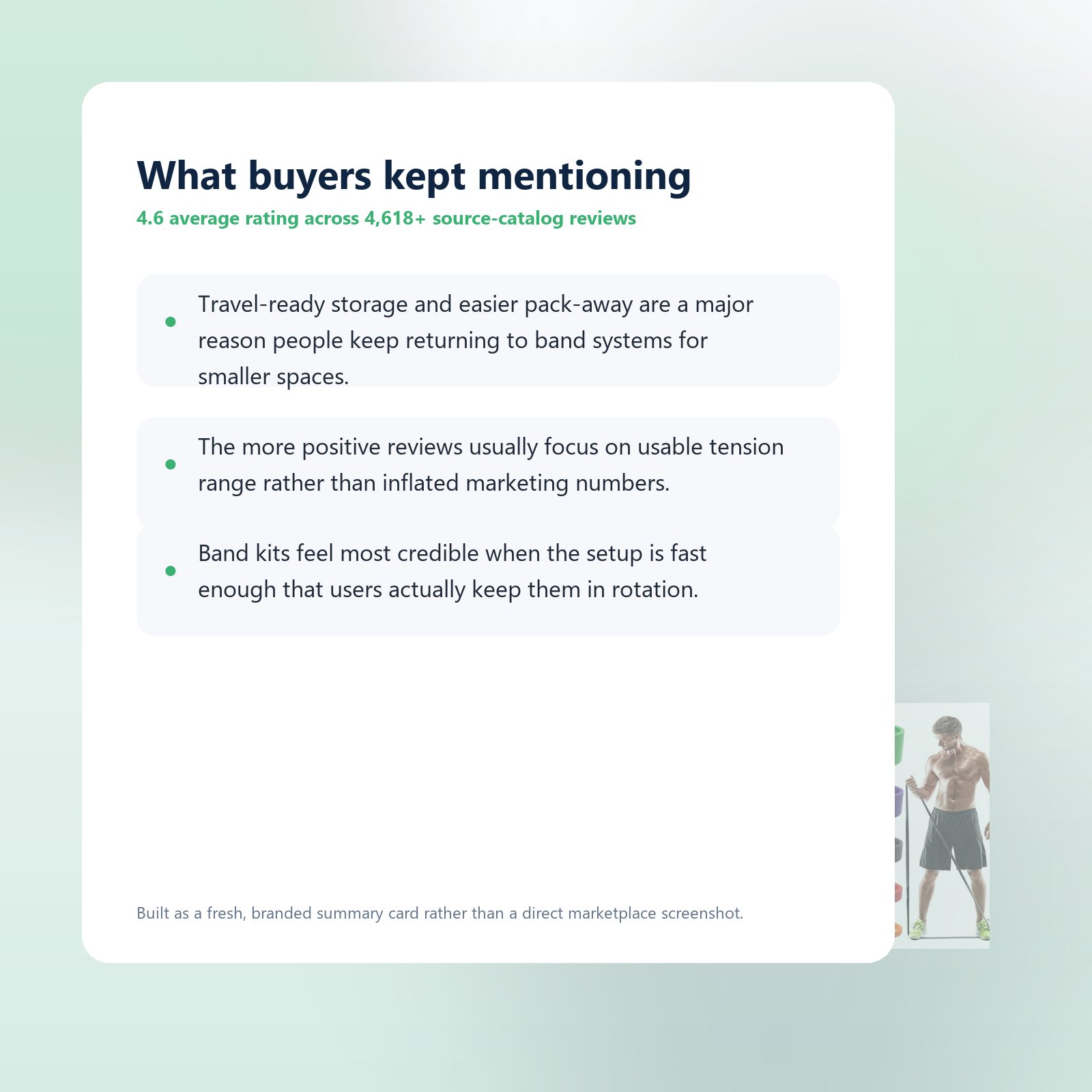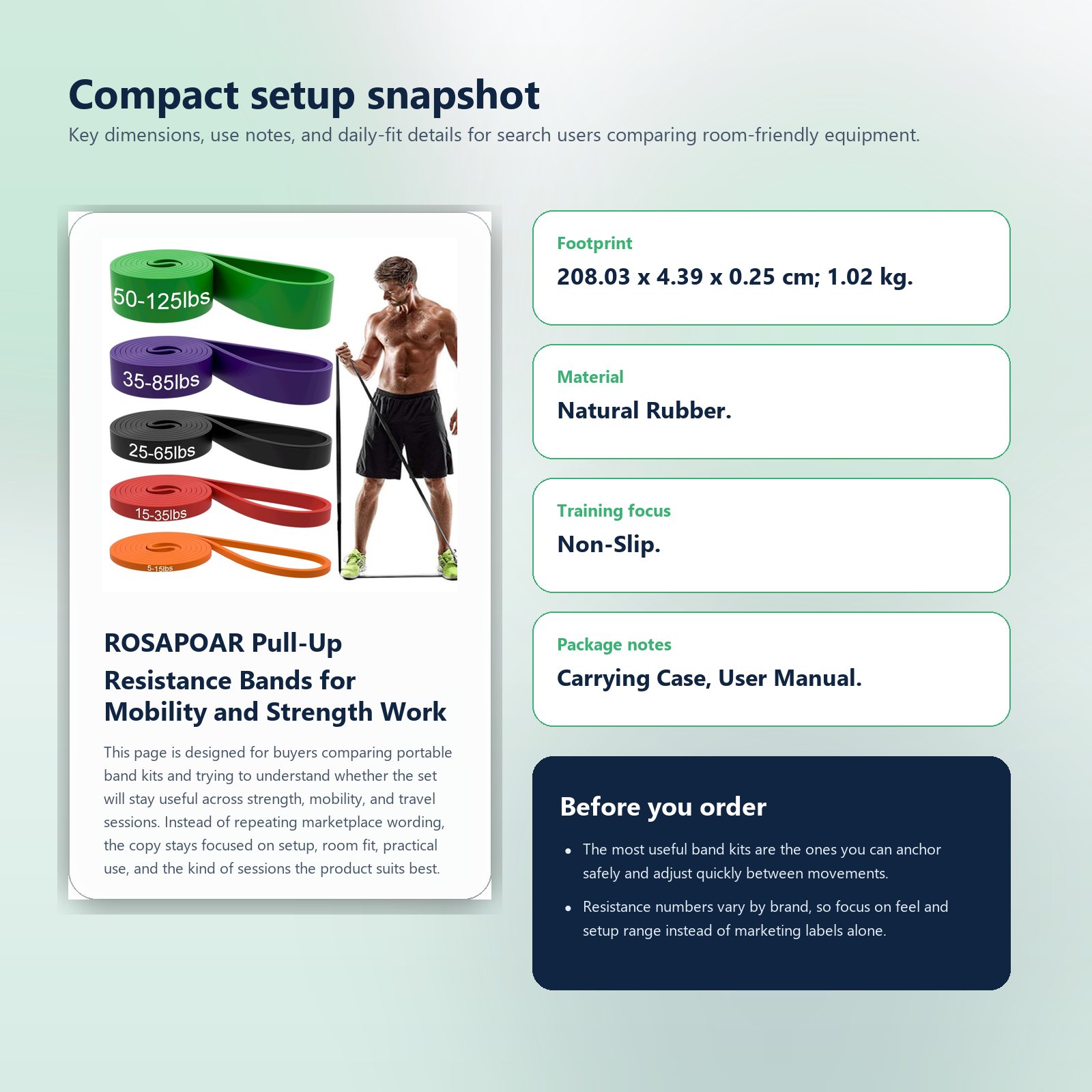 This page is designed for buyers comparing portable band kits and trying to understand whether the set will stay useful across strength, mobility, and travel sessions. Instead of repeating marketplace wording, the copy stays focused on setup, room fit, practical use, and the kind of sessions the product suits best.